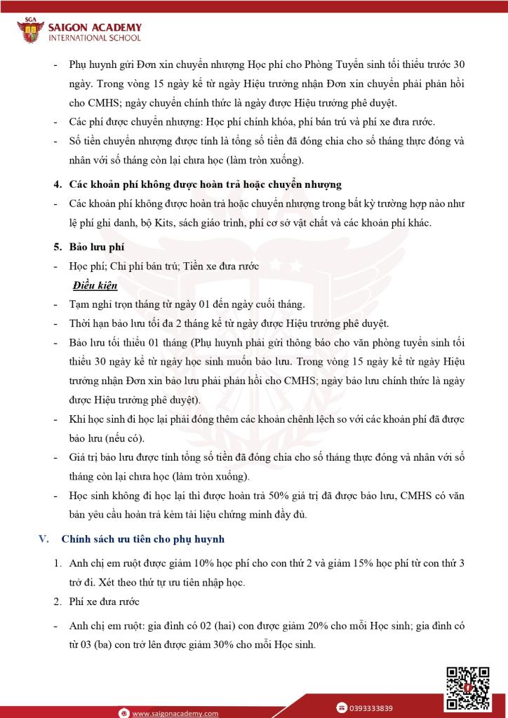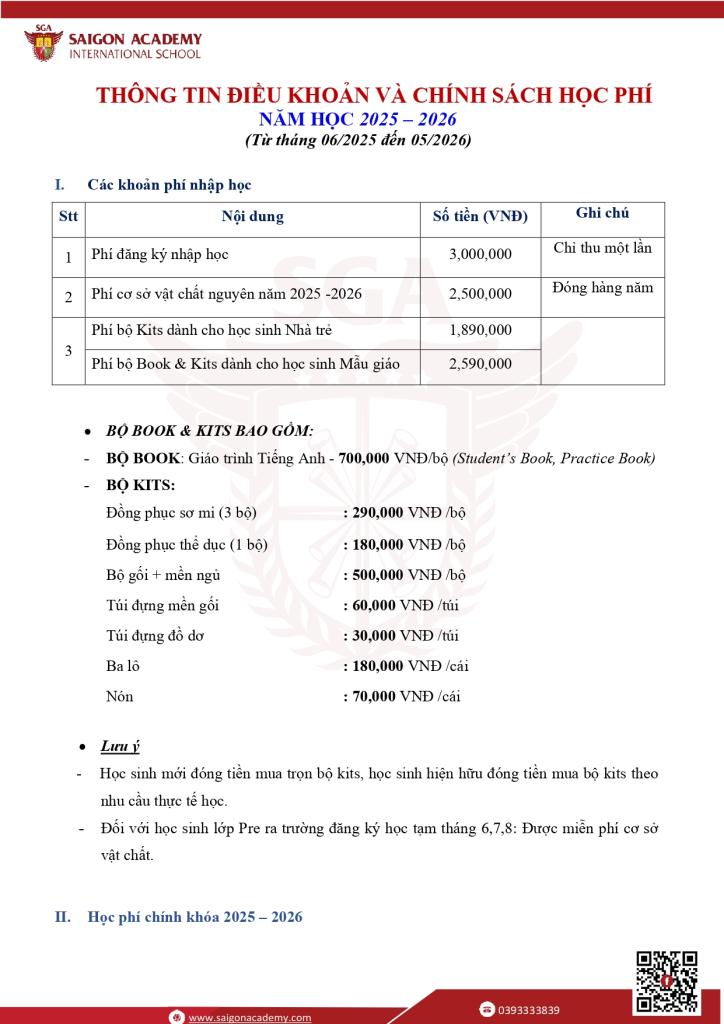 CHÍNH SÁCHTHU HỌC PHÍ NĂM HỌC 2025-2026