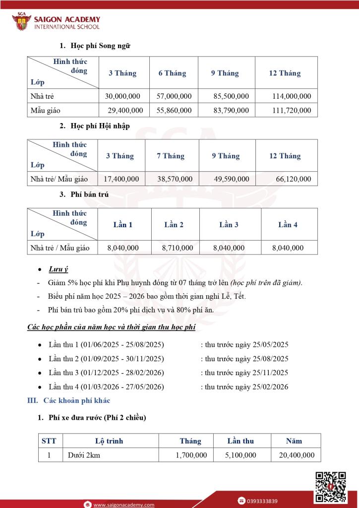 BIỂU PHÍ NĂM HỌC 2025-2026
